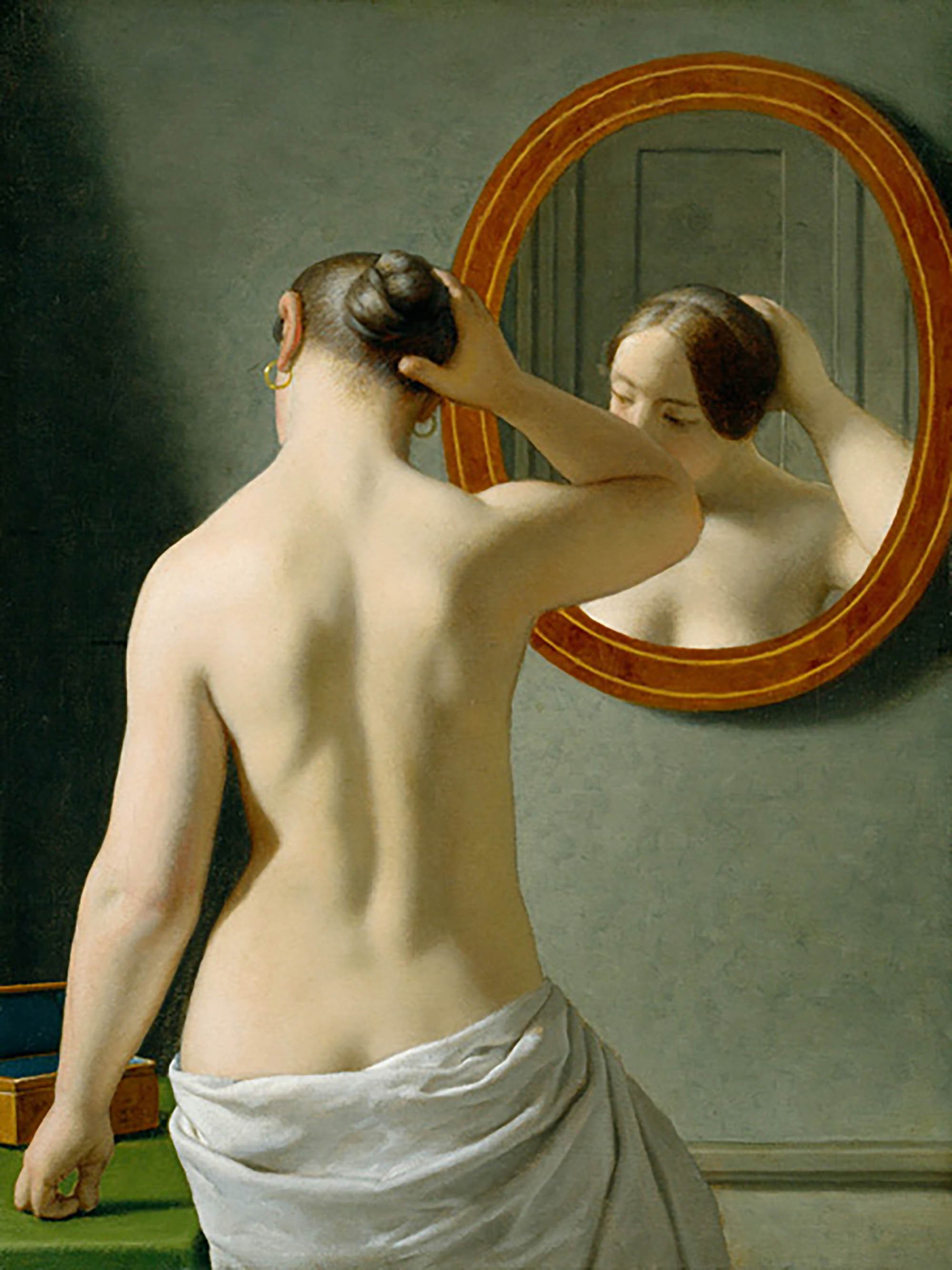 Mujer parada frente a un espejo
