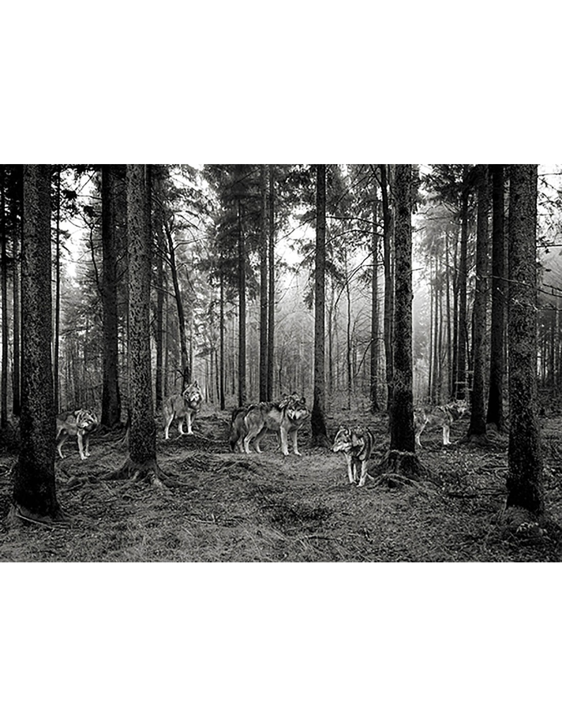 Manada de lobos en el bosque (BW)