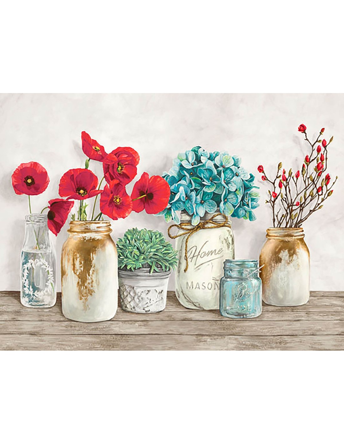 Composición floral con tarros Mason