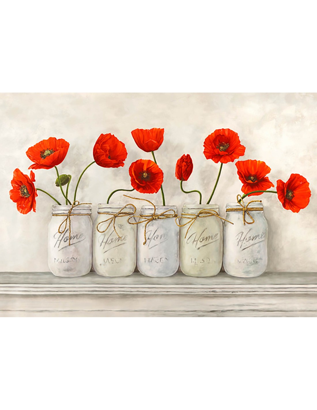 Amapolas rojas en tarros de cristal