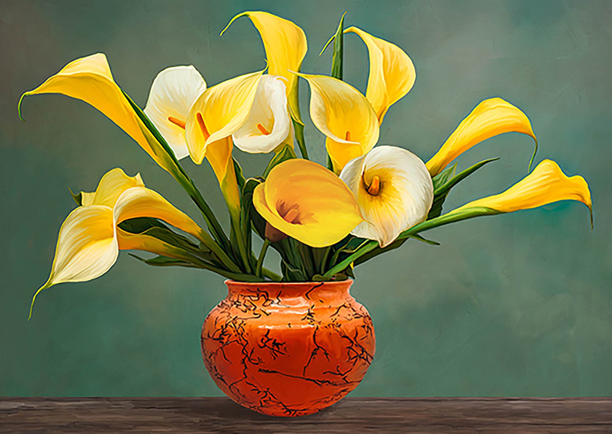 Jarrón de calas amarillas
