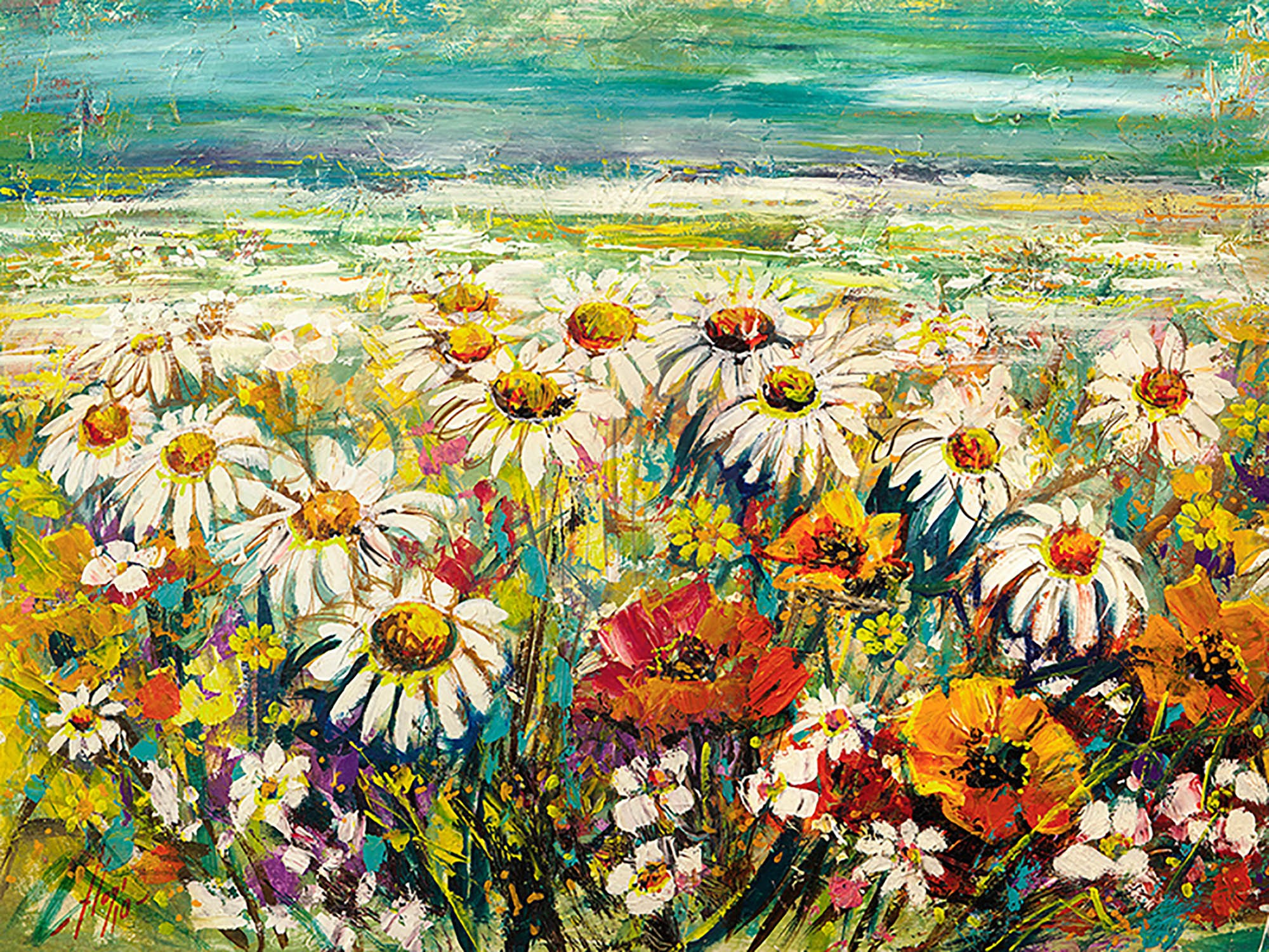 Margaritas bajo un cielo turquesa