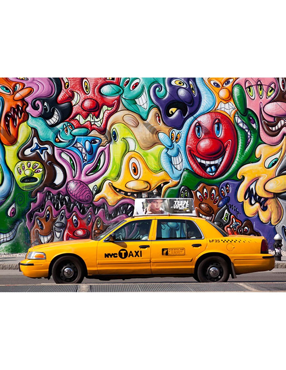 Taxi y pintura mural en Soho, Nueva York