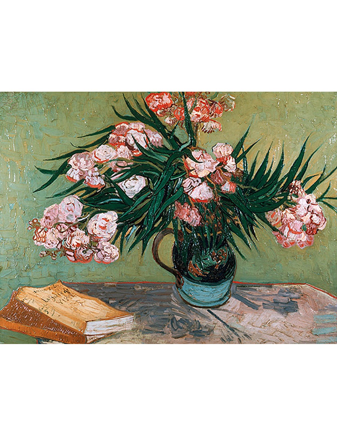 Jarrón con adelfas y libros