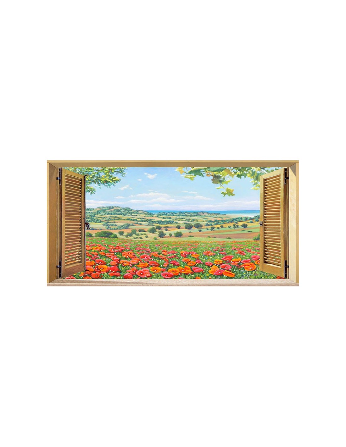 Ventana a un campo de amapolas
