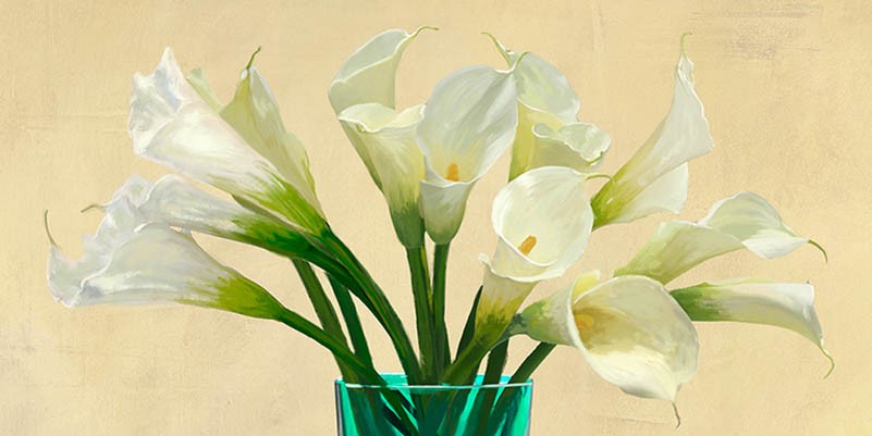 Calas blancas en un jarrón de cristal (detalle)