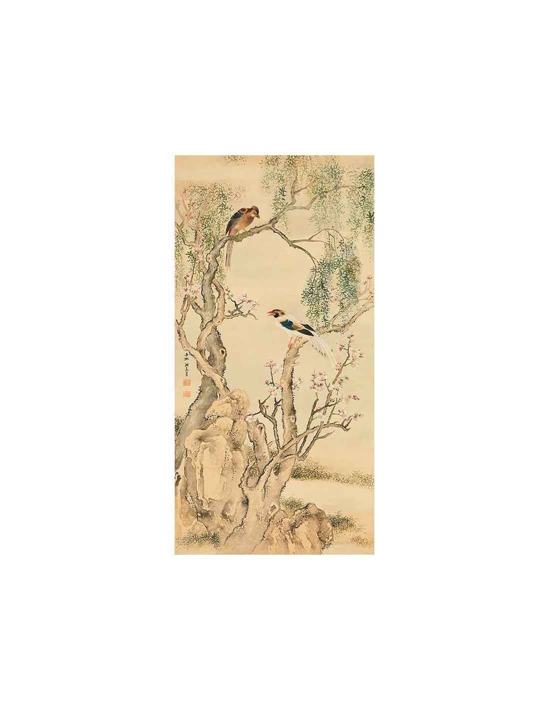 Pájaros en ramas floridas